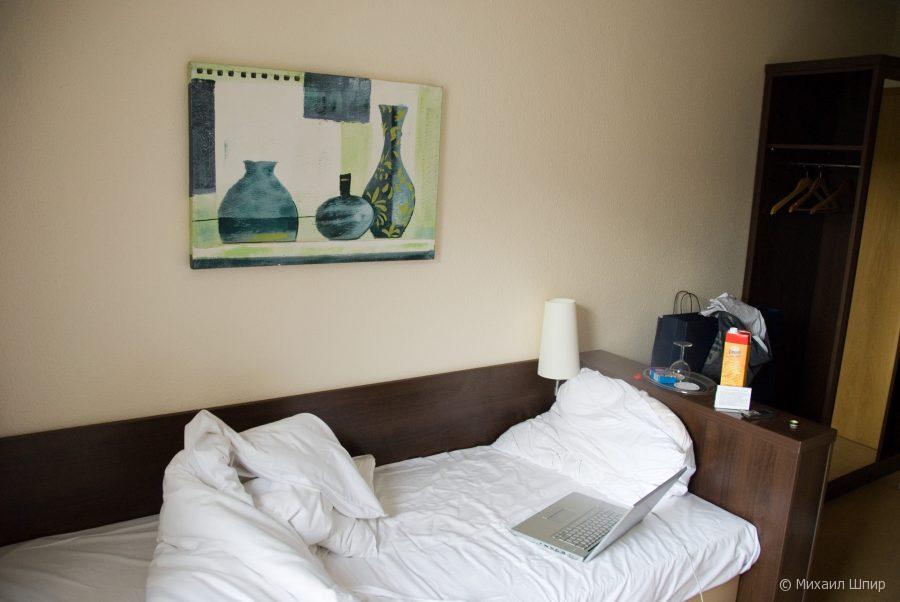 Поскольку Дюссельдорф — это вечные выставки, все нормальные отели были заняты. Пишлось жить с вот таким видом: