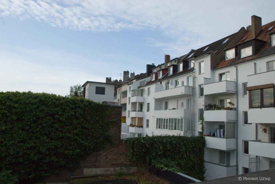 Поскольку Дюссельдорф — это вечные выставки, все нормальные отели были заняты. Пишлось жить с вот таким видом:
